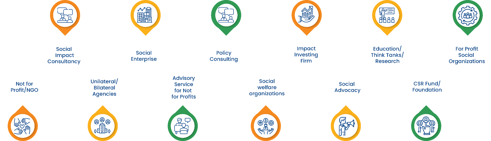- For-Profit Social Organizations: Entities with a social purpose that operate for profits.